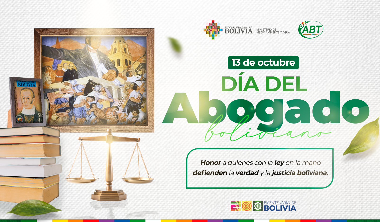 En conmemoración del Día del Abogado, la Autoridad de Fiscalización y Control Social de Bosques y Tierra (ABT) extiende un saludo especial a todos los profesionales del Derecho que ejercen con ética, compromiso y vocación de servicio en todo el país.