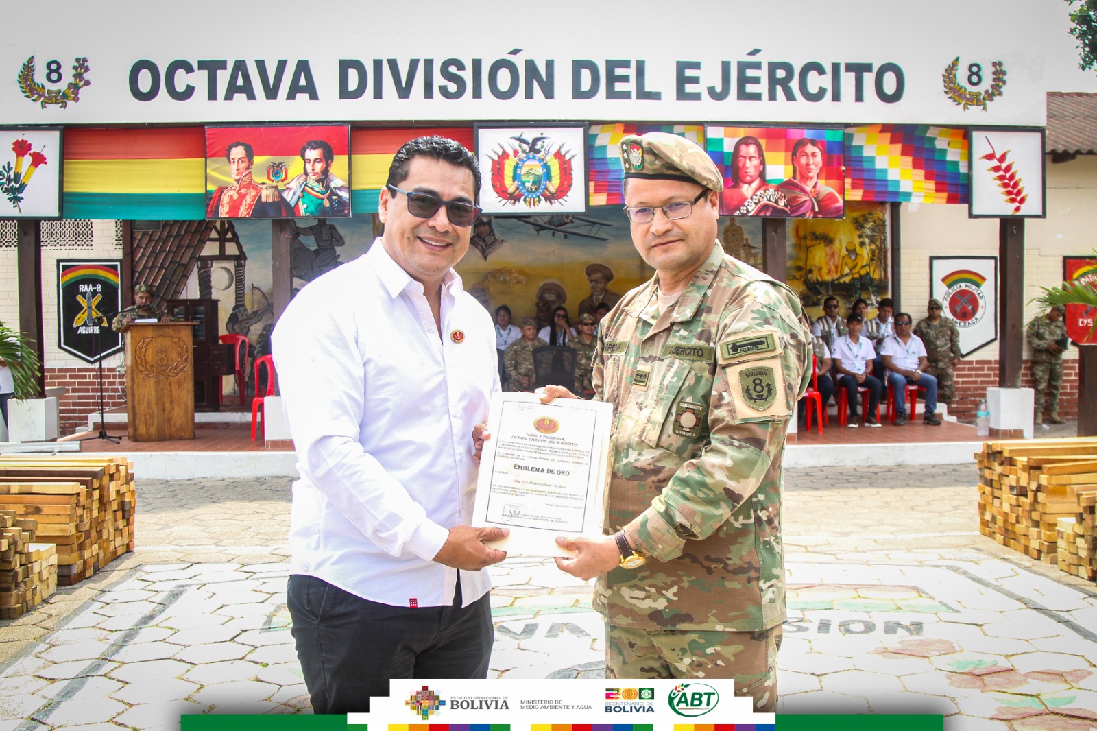 En un emotivo acto realizado en instalaciones de la Octava División del Ejército, la Autoridad de Fiscalización y Control Social de Bosques y Tierra (ABT) realizó la entrega oficial de madera proveniente delos Municipios de Concepción y de Ascensión de Guarayos, como parte del trabajo conjunto y los convenios interinstitucionales que fortalecen el cuidado y aprovechamiento responsable de los recursos forestales en beneficio del pueblo boliviano.